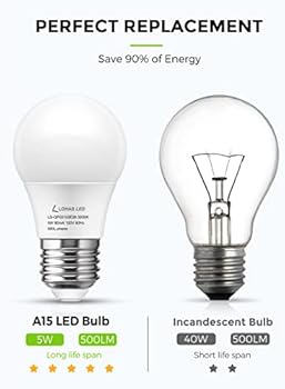 Amazon Com Lohas Refrigerator Light Bulb 40w Equivalent Led A15 Bulb 5w Led 120v Fridge Lights E26 Medium Base Ceiling Fan Light Not Dim Waterproof For Freezer Home Bathroom Kitchen Lighting 2 Pack
